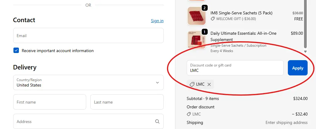 📌Subscription is the key to both free shipping and the IM8 Health subscription discount. By using code LMC, you ensure you are getting the most comprehensive deal available in 2026, and by utilizing the referral system, you can potentially drive your personal cost down to zero over time.